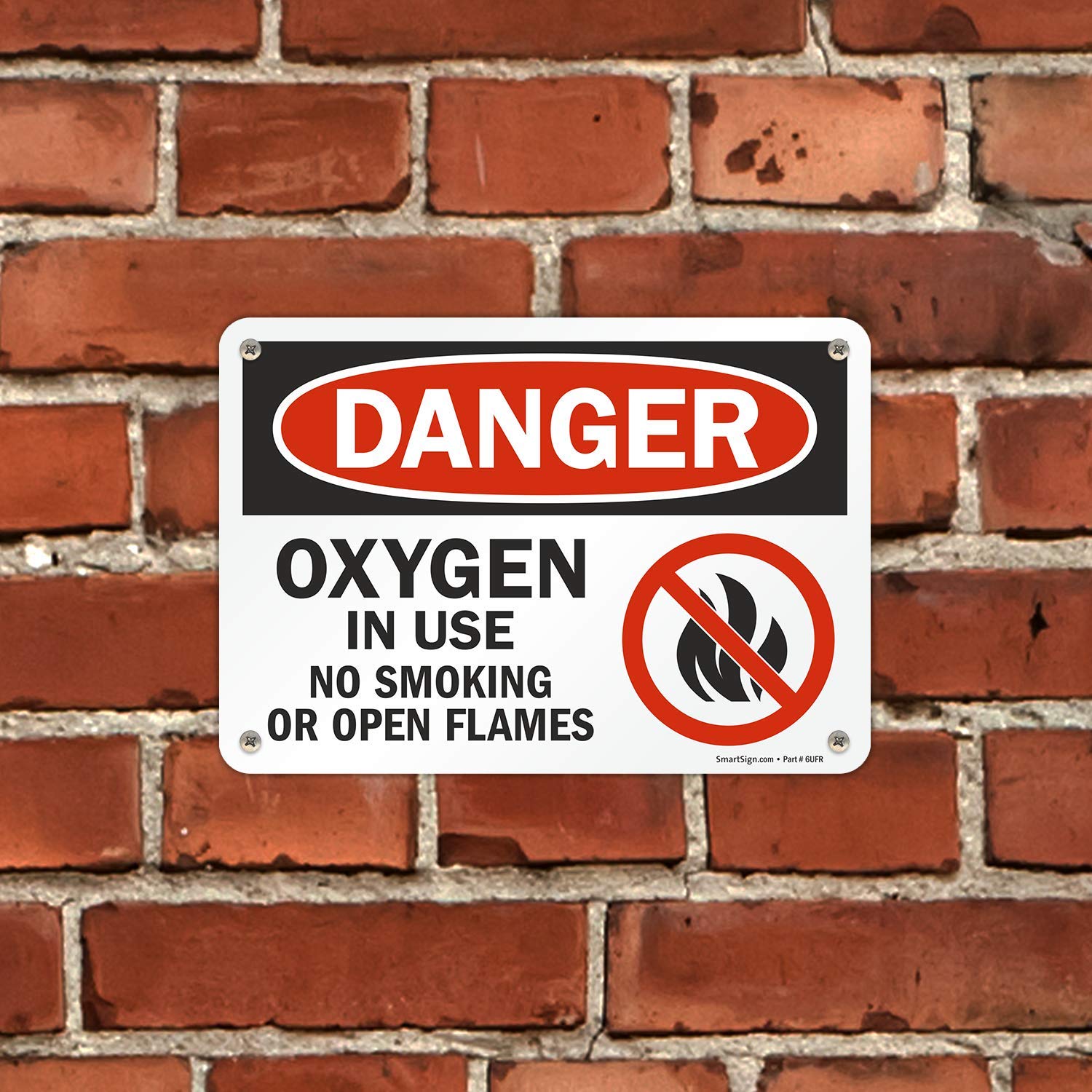 Amazon Com Smartsign U9 1266 Na 7x10 Danger Oxygen In Use No Smoking Or Open Flames Sign 7 X 10 Aluminum Black Red On White Industrial Scientific