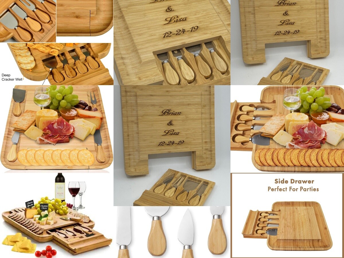 Large Cutting Cheese Charcuterie Board 13 X 13 Engraved Personalized Knife Set Ebay